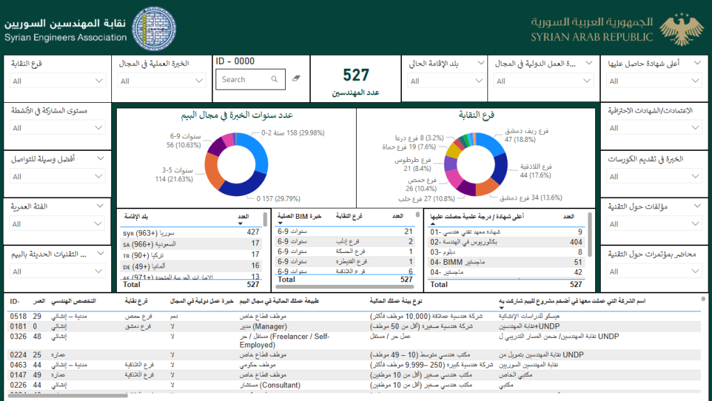 As of this date, 527 Syrian experts in Building Information Modeling (BIM), from within Syria and abroad, have completed the BIM Experts Survey. An overview of the preliminary results is presented below.